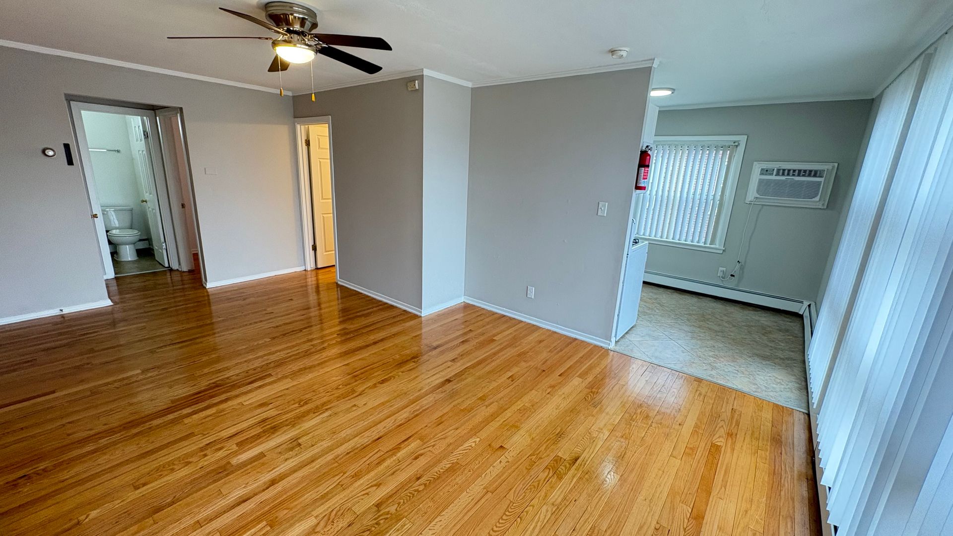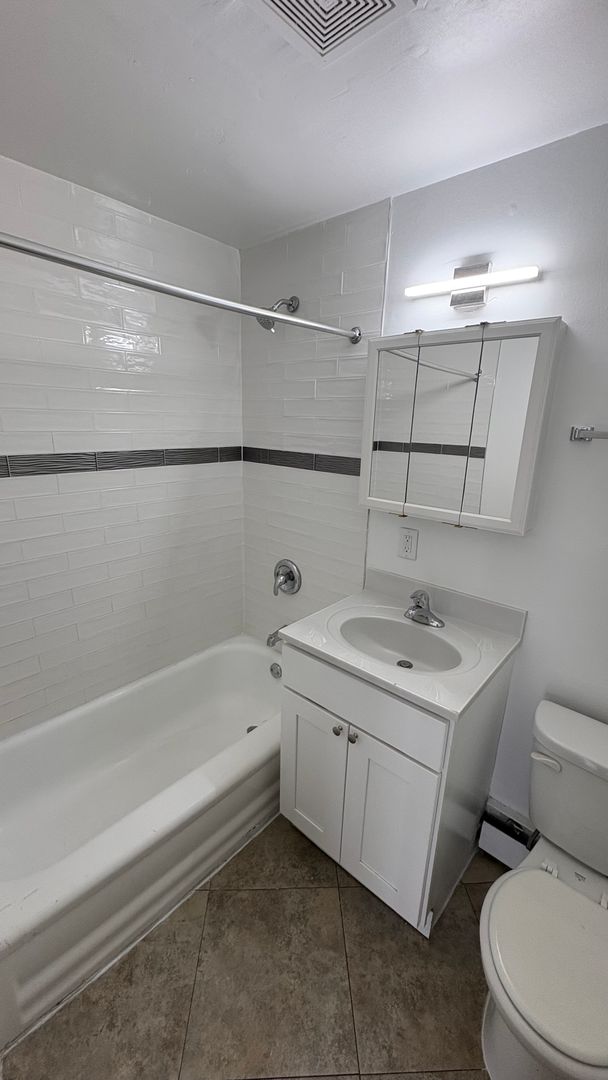 This is a 617 sq ft second level apartment with hardwood floors throughout the spacious bedrooms and front room. The kitchen has been recently remodeled, with new appliances including a microwave. The bathroom is also newly renovated, featuring bright tilework and lighting. Sizable windows that allow for natural light, and an air conditioner in the dining area complete the comforted look. The building is a walk-up, and offers curbside parking, intercom access, laundry facilities, 24 hour emergency maintenance, and public transport GTSC right off the corner.