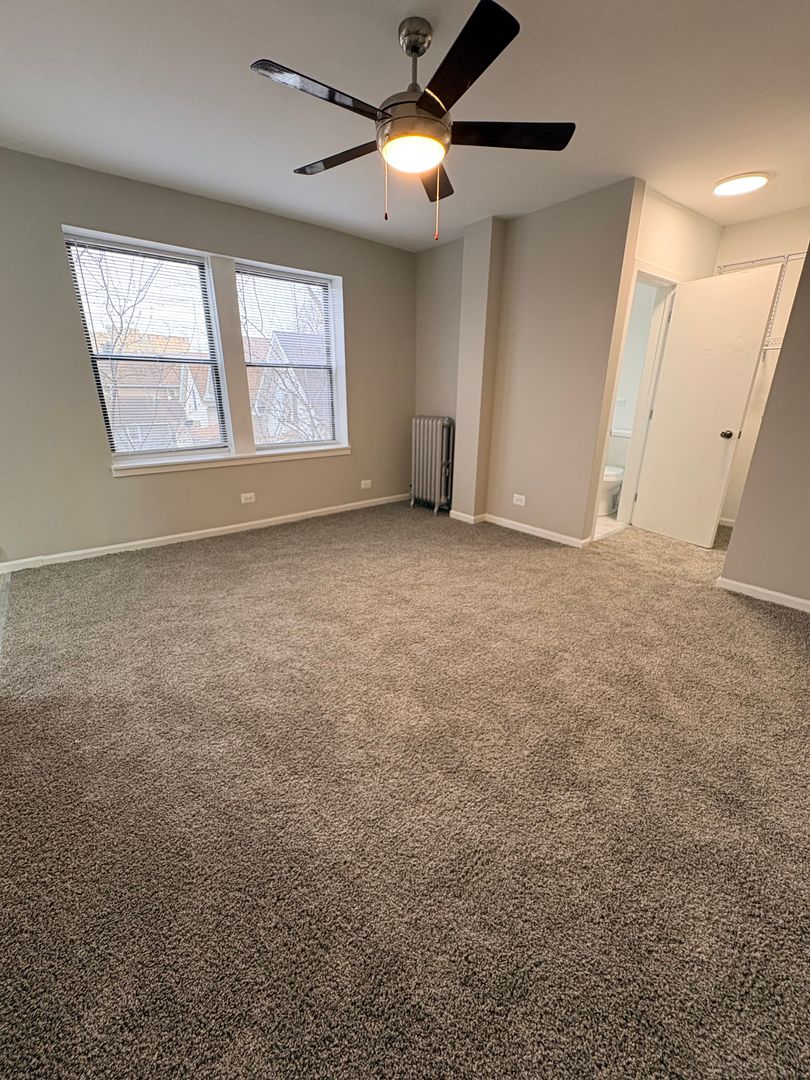 Cozy studio apartment available for rent now on the 2nd floor. This apartment is recently renovated with a white cabinet kitchen & walk in closet. The kitchen is separate from the living space with a dining nook, featuring full size appliances - electric stove, microwave & fridge.