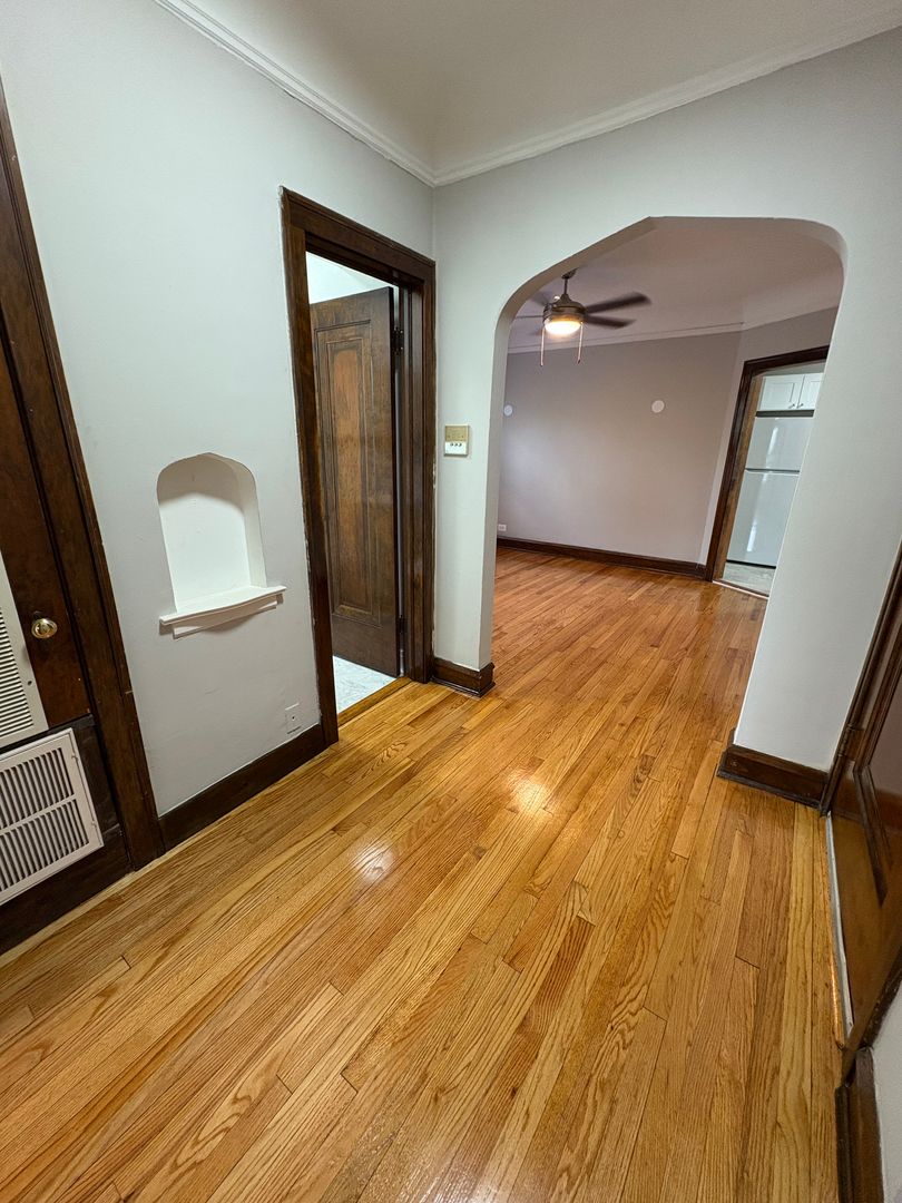Spacious 1 bedroom apartment available for rent now on the 3rd floor. This apartment has a newly remodeled white cabinet kitchen, hardwood flooring & original crown molding throughout. Quiet building in the Austin neighborhood on Menard & Walton, 1 block away from Austin bus stop.