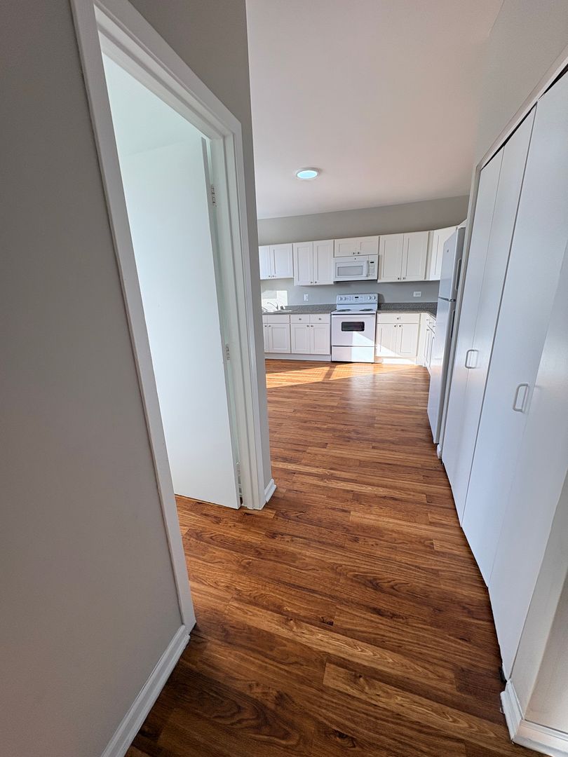 Spacious 3 bedroom apartment available in the Austin neighborhood on the 3rd floor. This apartment features wood plank flooring & carpet with a huge white cabinet kitchen. Building is located on Madison & Lavergne.