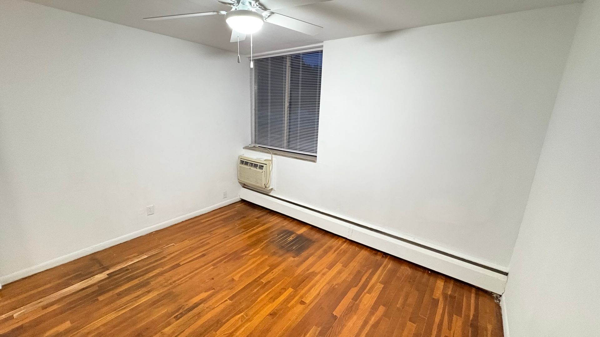 This is a 621 sq ft first level apartment, with beautifully varnished hardwood flooring and a bright, welcoming kitchen featuring an above-stove microwave to free up counter space. Updated amenities have been added to the bathroom, along with air conditioning units and ceiling fans in the front room and bedroom.